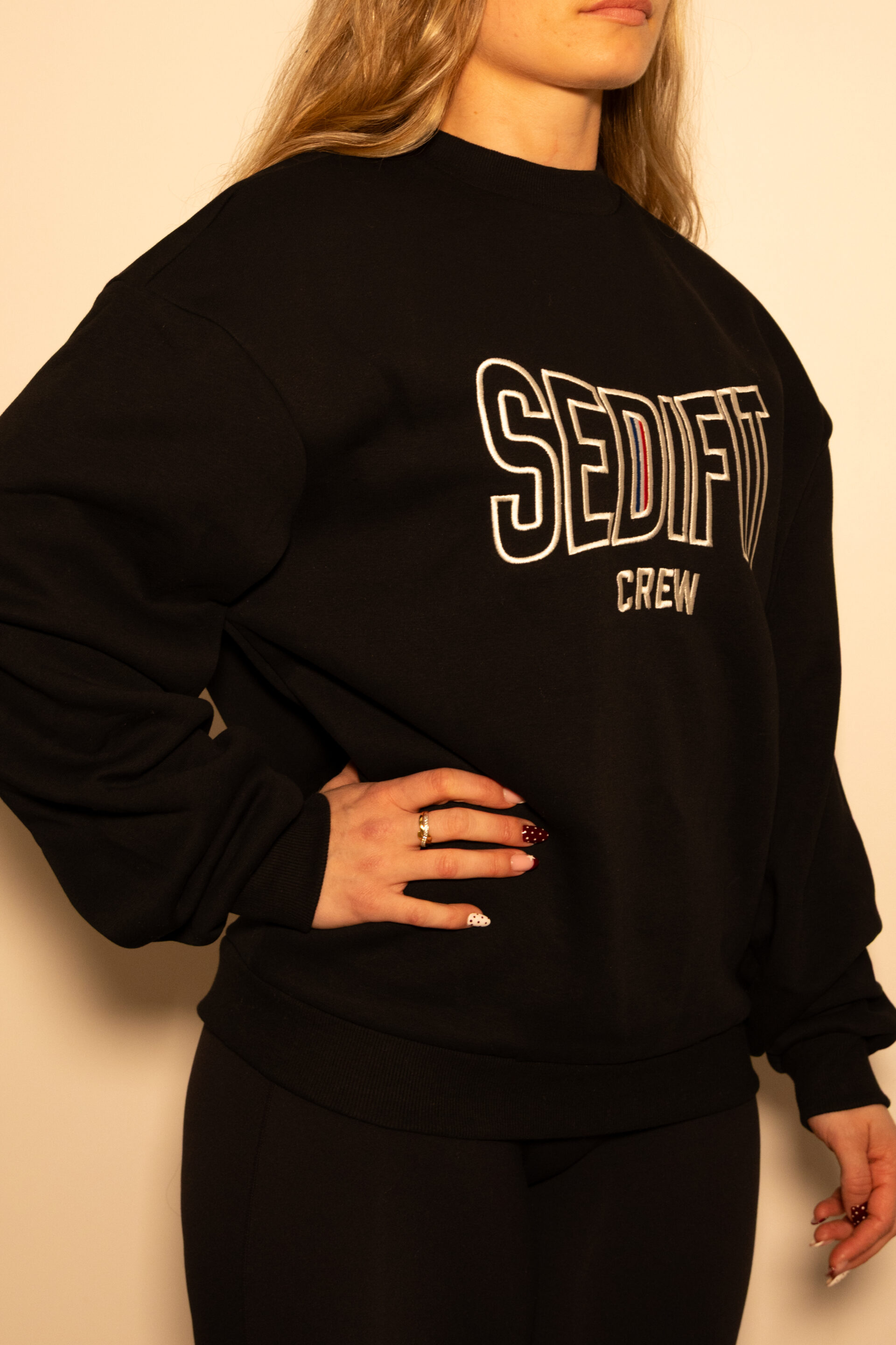 Sa matière épaisse, agréable et englobante offre une sensation premium immédiate. Sa coupe ample, ses épaules tombantes et son tombé travaillé créent un look urbain unique, puissant et affirmé. Le logo Sedifit Crew, massif et reconnaissable, fera instantanément la différence.