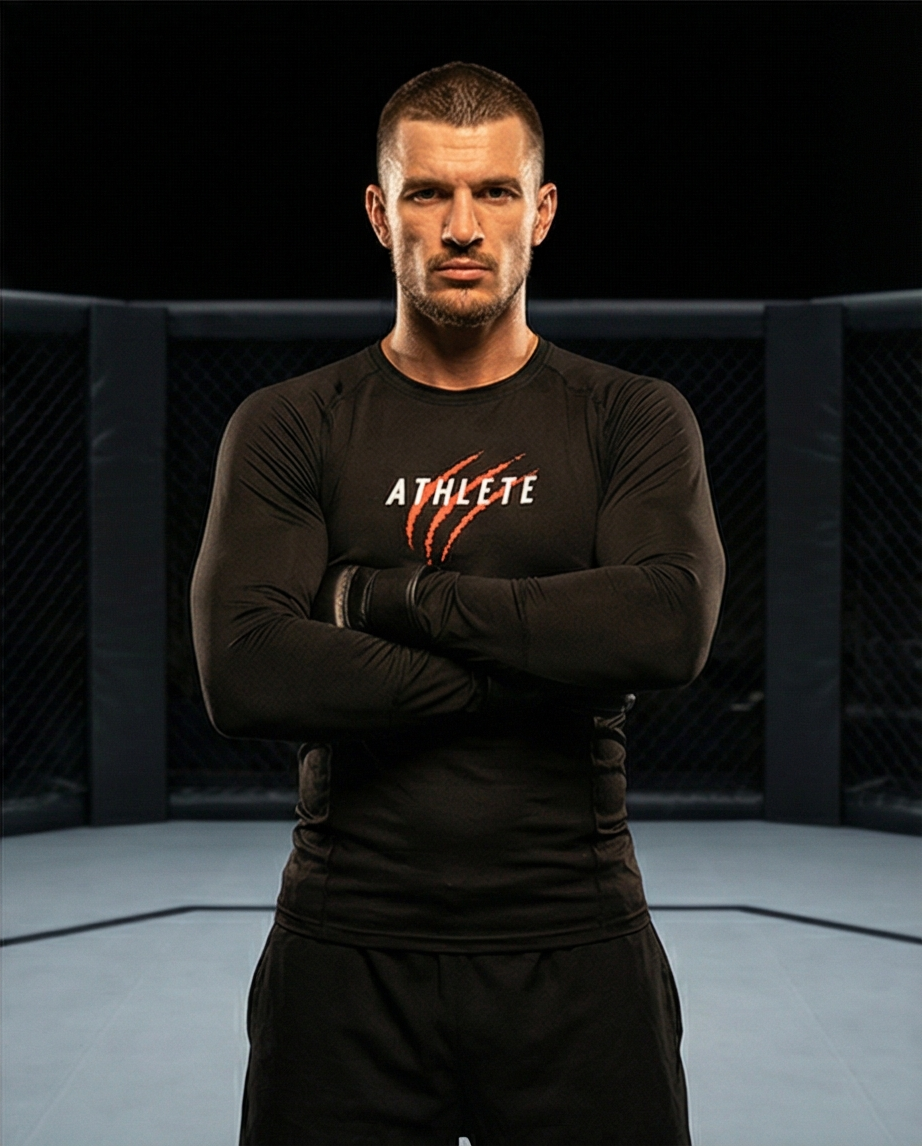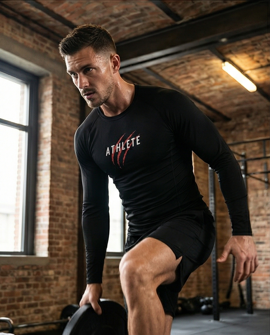 Épais mais respirant, il offre une sensation de contention légère, idéale pour l’entraînement intensif, le running ou toute activité nécessitant performance et confort. Les finitions double aiguille et les points de recouvrement ton sur ton garantissent durabilité et style, tandis que sa coupe ajustée optimise l’efficacité de chaque mouvement.